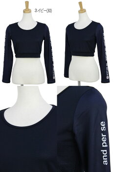 アンパスィ and per se レディース インナーシャツ 長袖 ラウンドネック アンダーウエア アンダーシャツ 身頃部メッシュ素材使用 吸水速乾 ストレッチ ボーダー柄 ロゴ飛び柄 ロゴデザイン 2018 春夏 新作 ゴルフウェア
